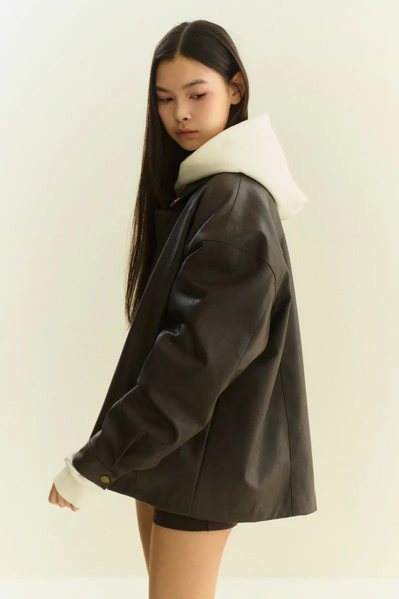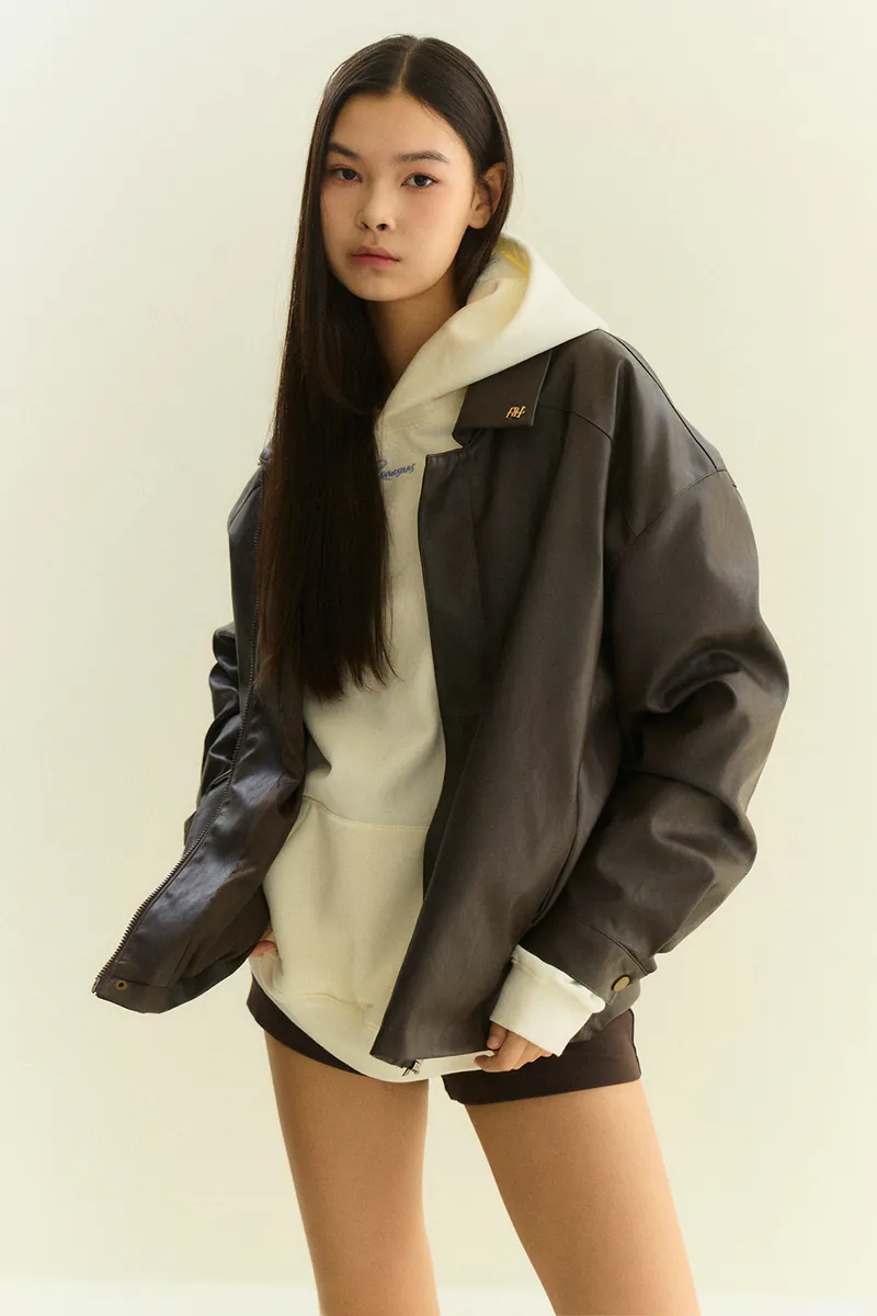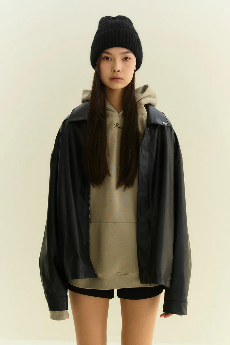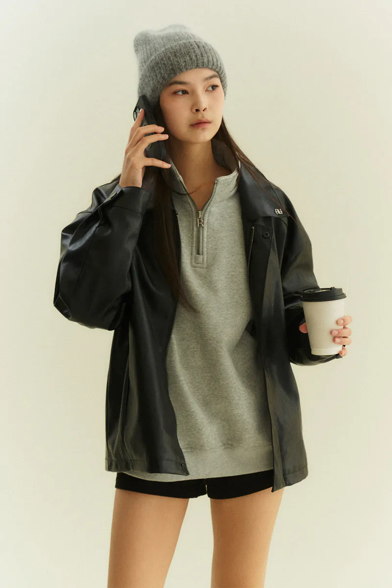 翻領復古寬鬆皮外套
