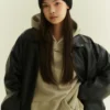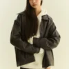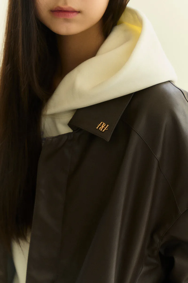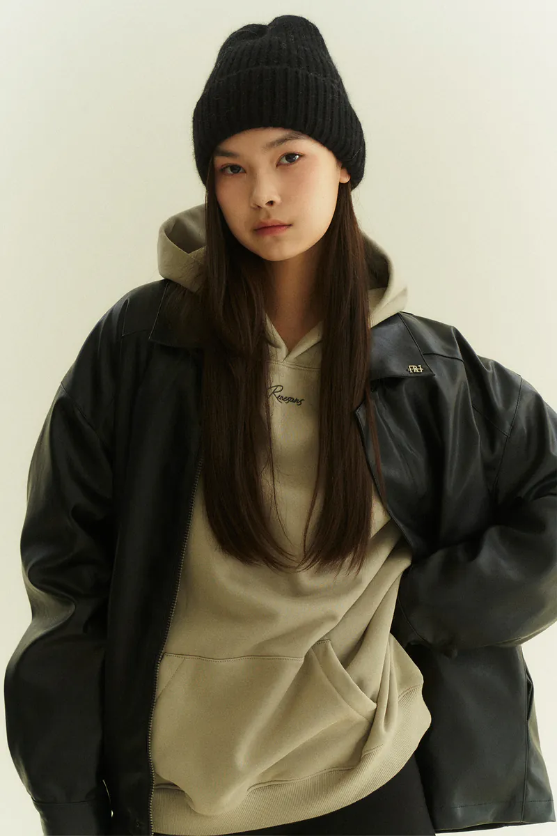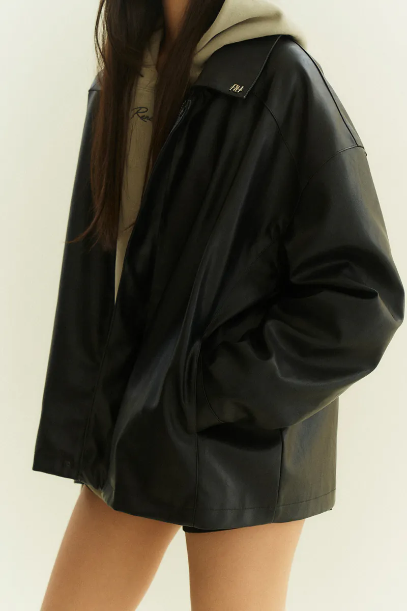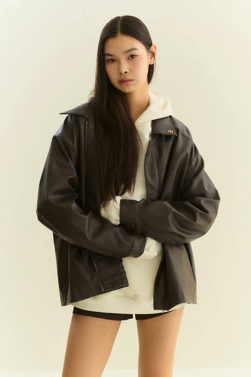 翻領復古寬鬆皮外套