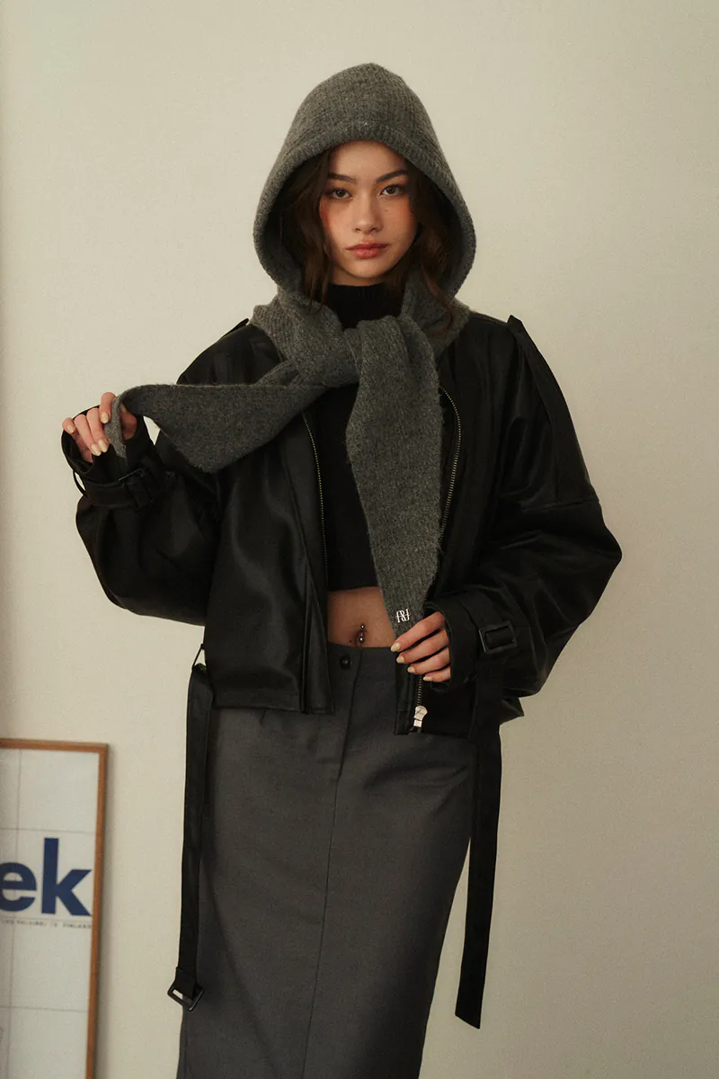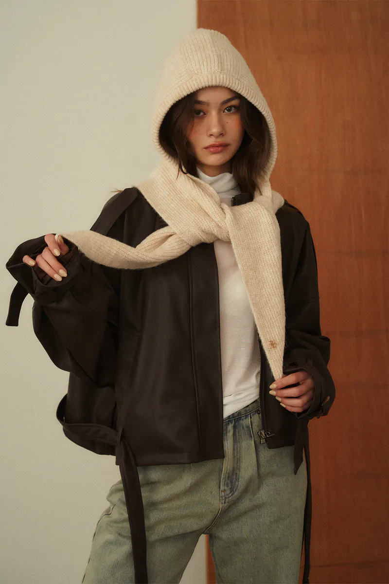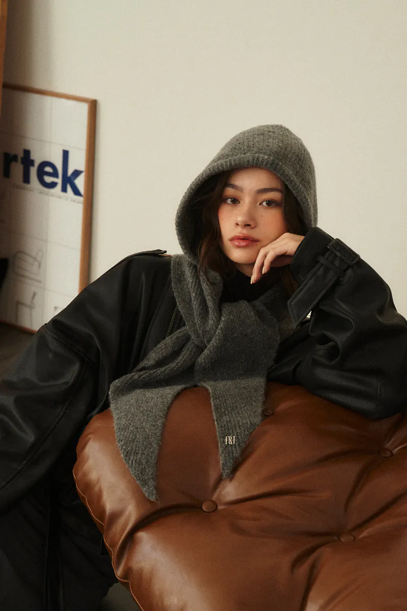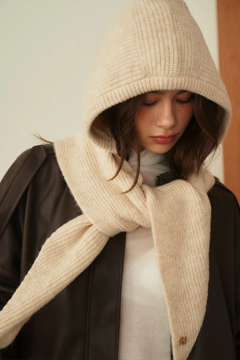 Wool-blend hooded scarf