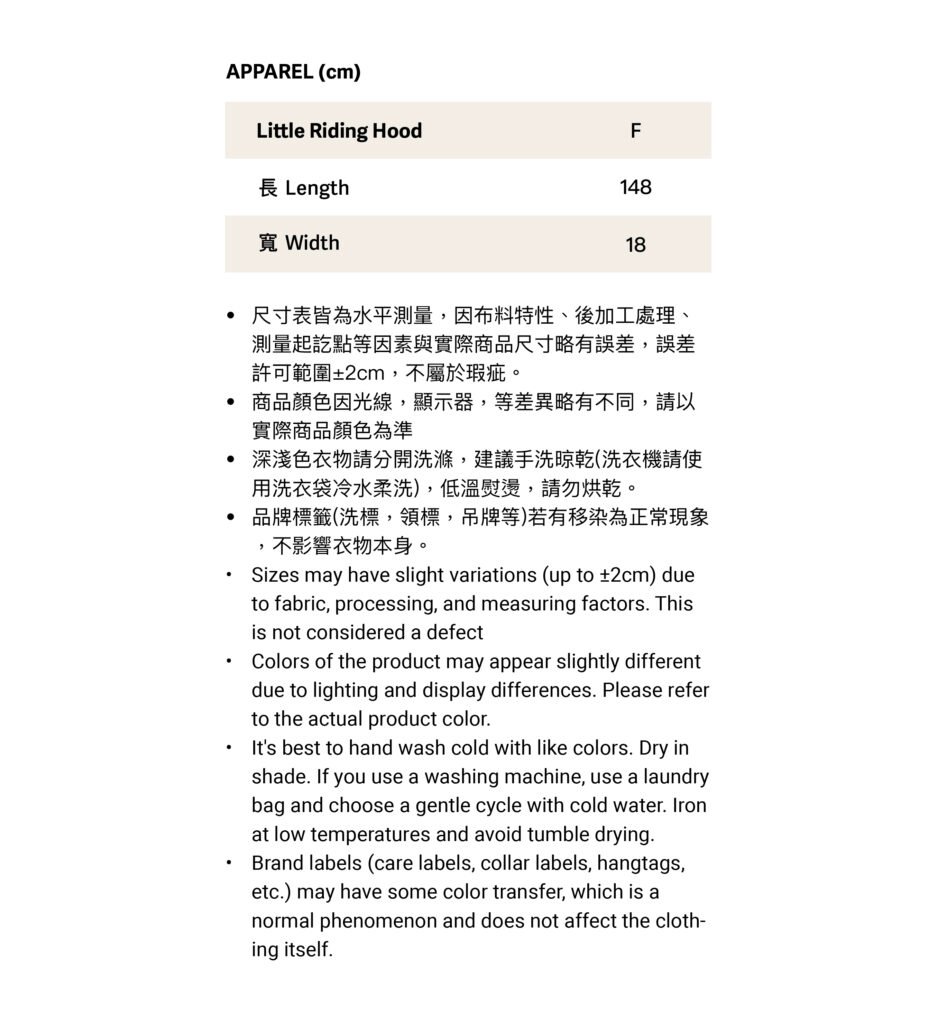 • Brand labels (care labels, collar labels, hangtags, etc.) may have some color transfer, which is a normal phenomenon and does not affect the clothing itself.