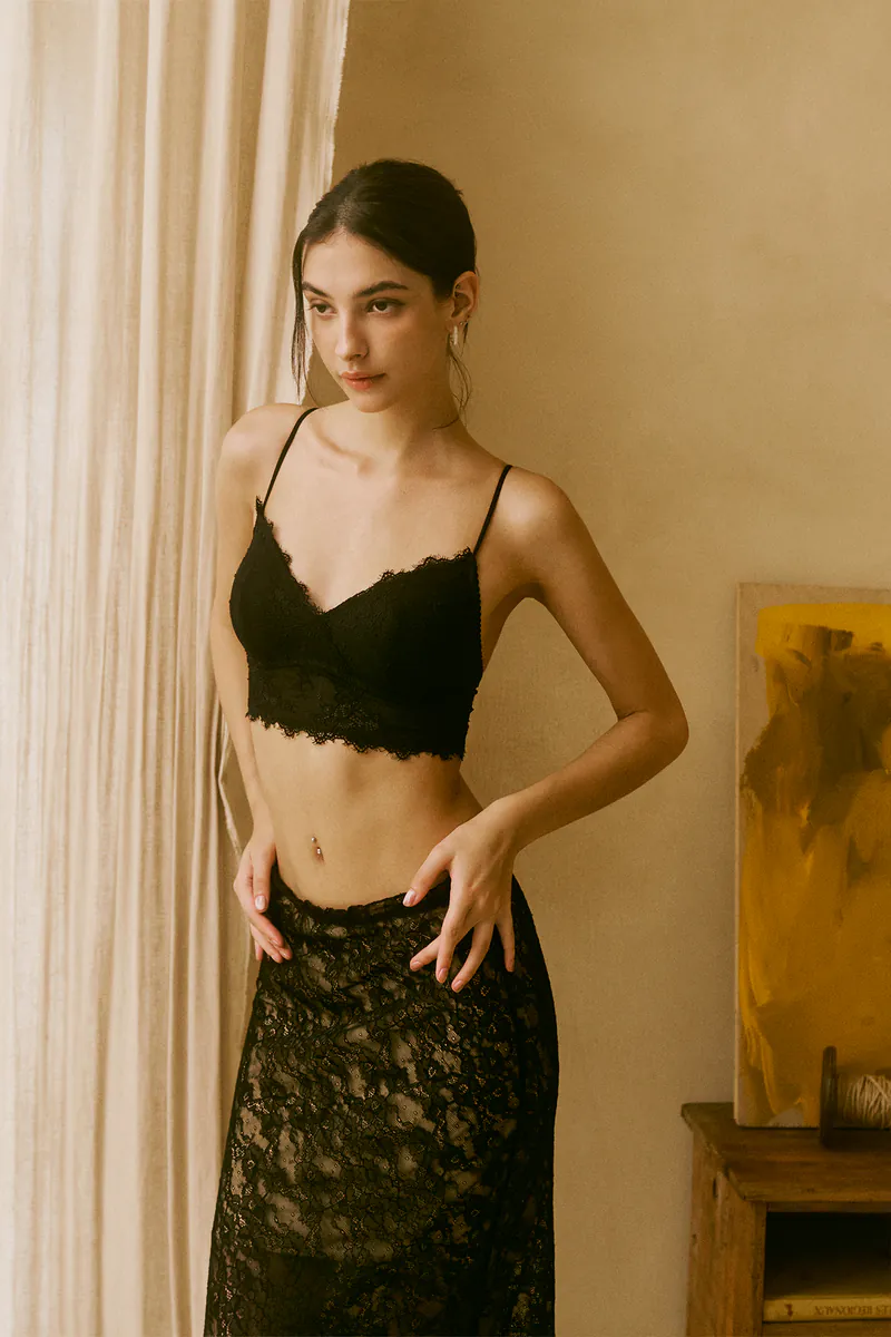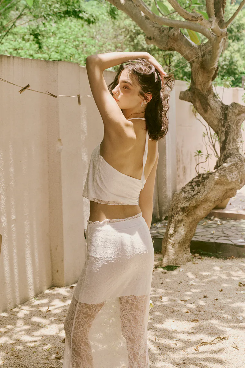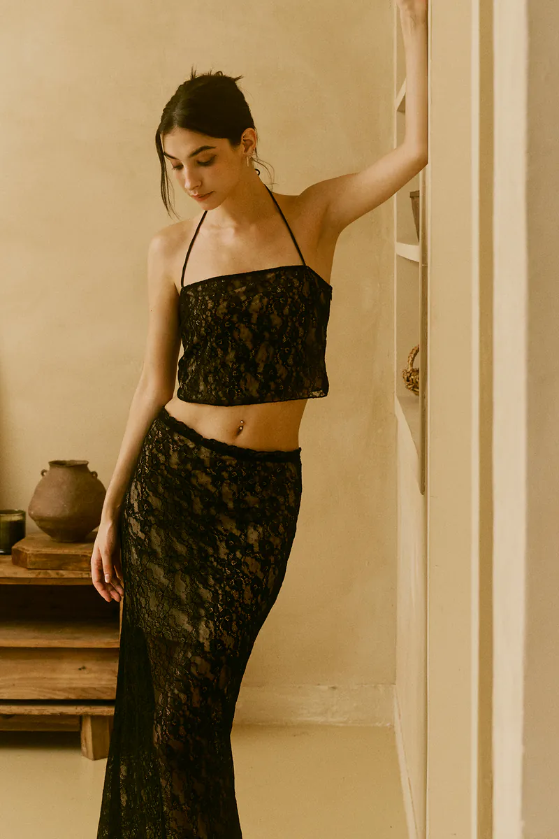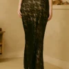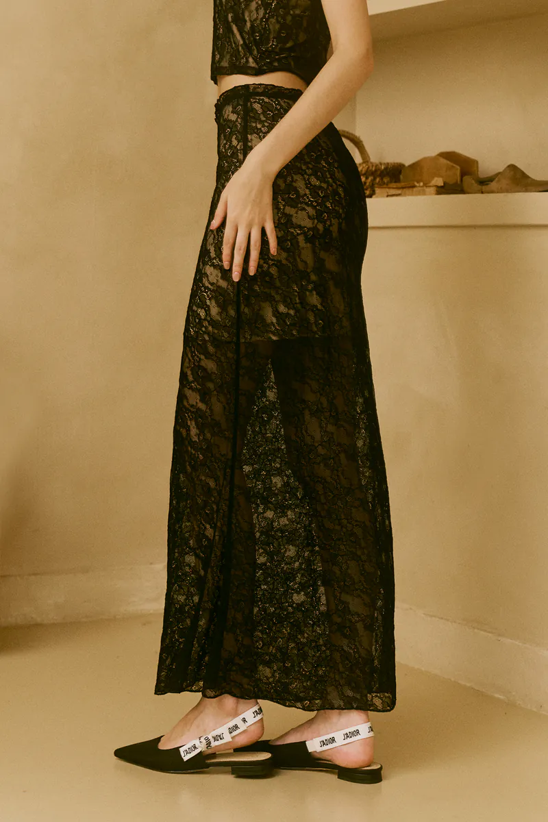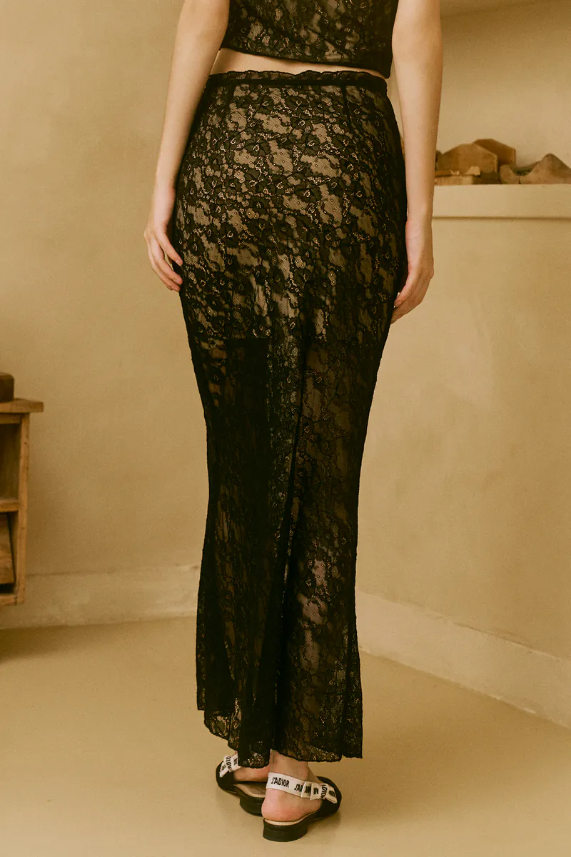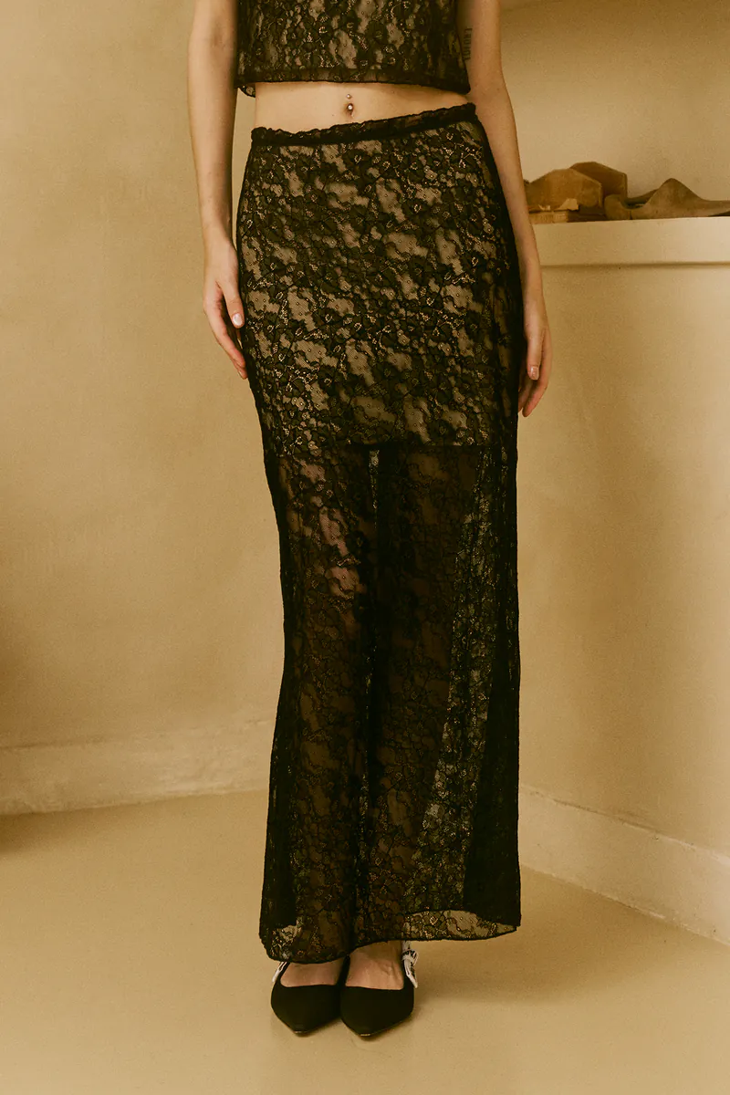 Stretch nylon lace maxi skirt