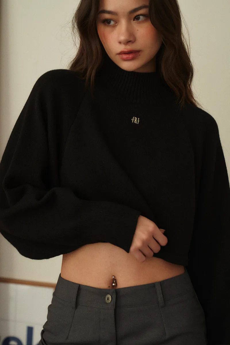 舒服到打瞌睡的高領短版寬鬆毛衣