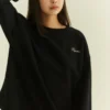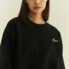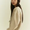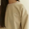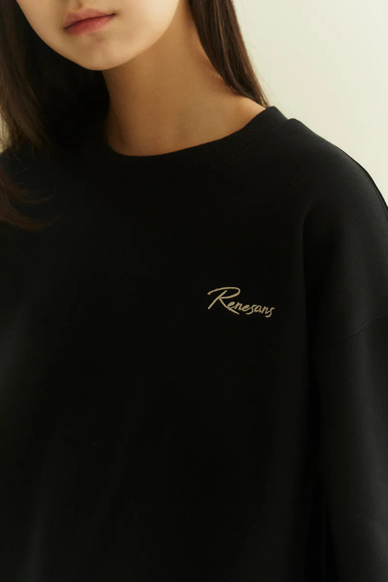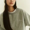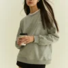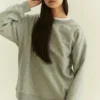 Rib knit crewneck collar, cuffs, and hem